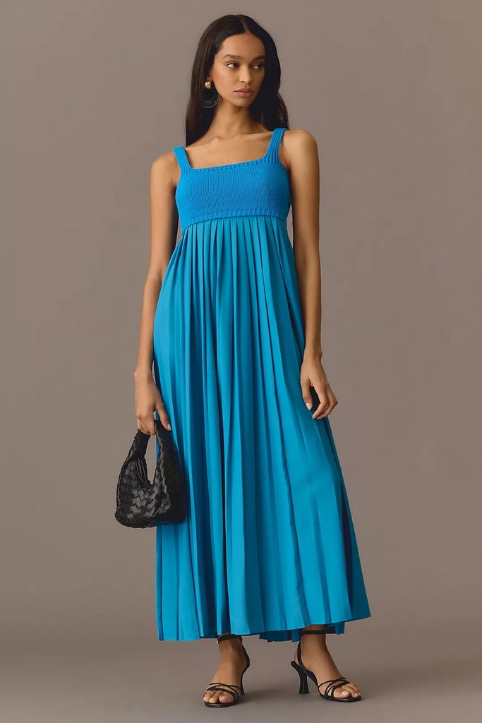 Why It’s Trending: While this dress is currently one of the lower-ranking styles in this roundup, we think it has the potential to gain traction as the following weeks pass by. After all, who can deny the maxi length, the pleated skirt, and the crochet-detail top? “The dress is substantial. The pleats and the fabric weight hang beautifully. However, I felt as though it ‘swallowed’ me. I considered sizing down to an XS, which is not uncommon for me,” suggests one reviewer. Once you find the correct fit for your frame, we think this vibrantly hued spring dress will wow any passersby.