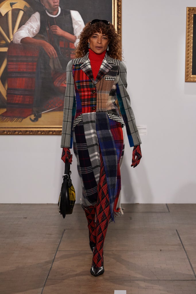 Designers have revamped iconic school patterns with contemporary twists, including vibrant houndstooth and plaid at Chanel and Versace, windowpane checks at Rokh, buffalo plaids at Off-White and Nanushka, and mixed prints at Marine Serre.
