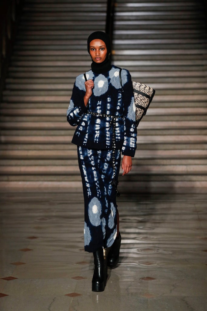 Knitwear is quintessentially autumn-ready, and a staple in any school-inspired wardrobe. Fall 2022 styles run the gamut from shawl collars at Bottega Veneta to argyle seen at Rokh, Tory Burch, and Eytys, and cardigans like at Chanel and Libertine. Take a cue from runways when wearing yours, like the waist-cinched styling seen at Bottega Veneta and Louis Vuitton and the belted cable knits shown at Brandon Maxwell.