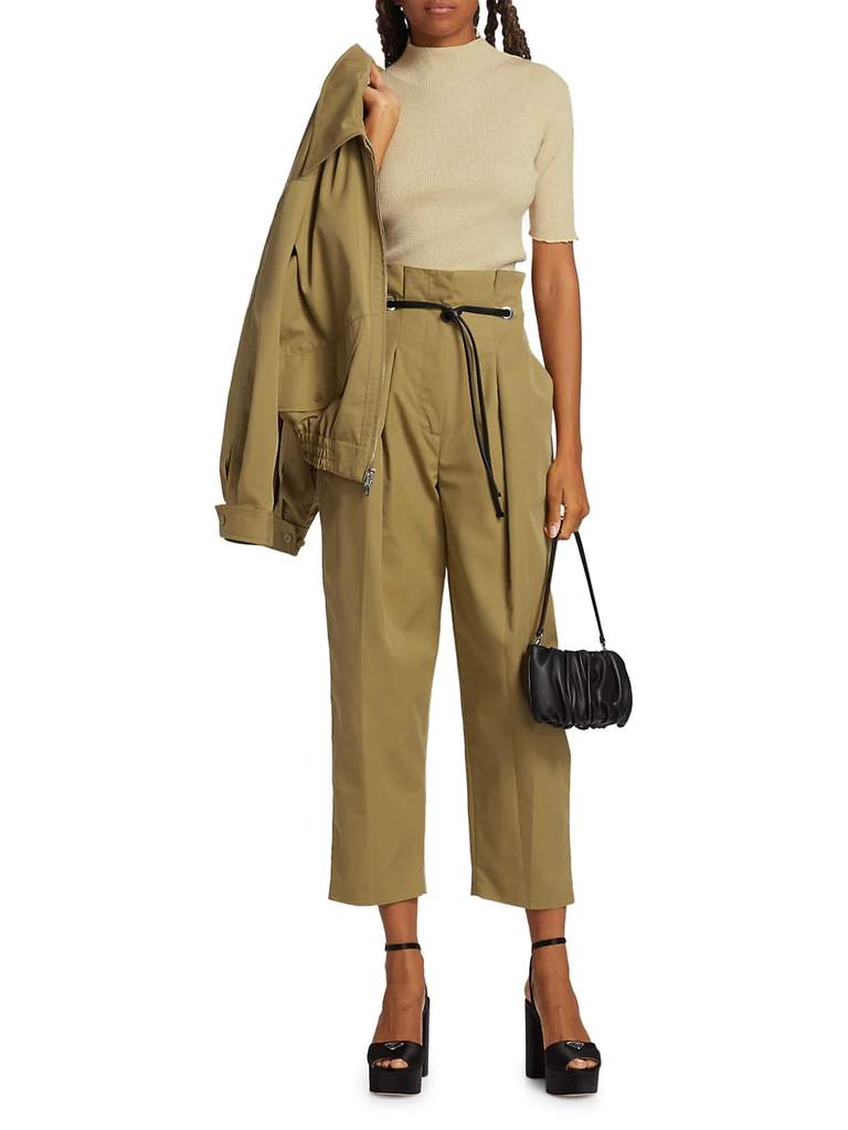 “The biggest trends we’re seeing this winter are around returning to office, and an appetite for more lifestyle wear. This season, we’re seeing a major shift from dresses to pants. Everything from tailored trousers to cargo pants to high-waisted denim flares are gaining popularity and traditional styles are being reimagined with updated silhouettes, pops of color, and sleek materials.” — Roopal Patel, fashion director at Saks