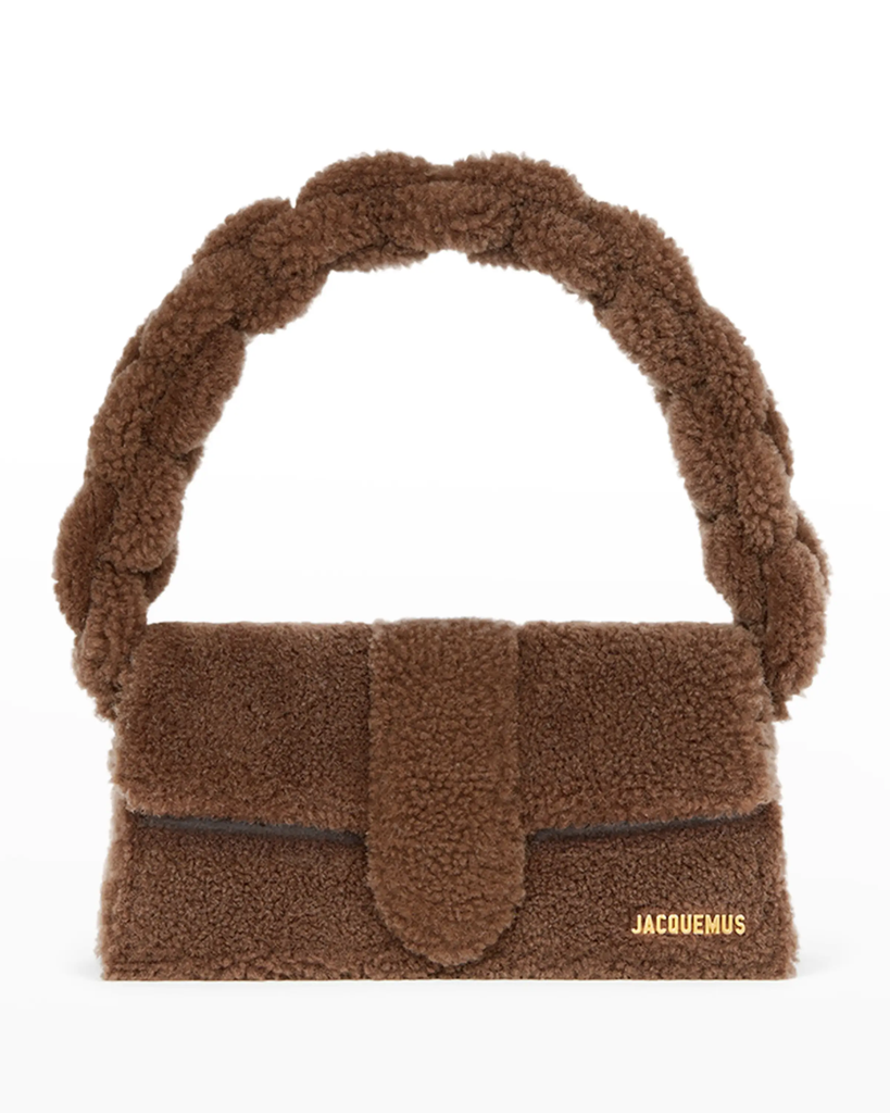 “I am gravitating towards lots of texture this winter — a shearling bag is a great way to make a statement with an added element of warmth and fun. I love the shoulder bag from Jacquemus and top-handle bag from DeMellier — both elevate any outfit, making it winter-chic.” — Jodi Kahn, VP of luxury fashion at Neiman Marcus