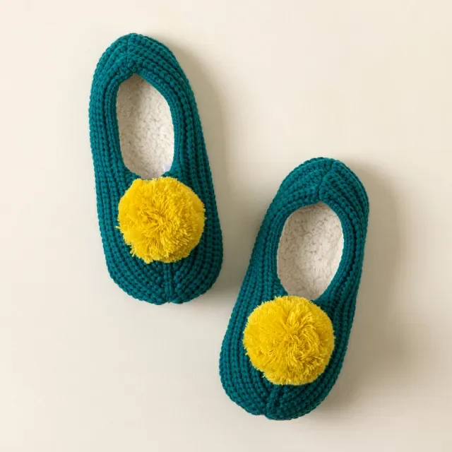 Slippers tend to come in shades of gray and beige, but this fleece-lined pair defies the status quo with a pop of color via playful pom-poms.