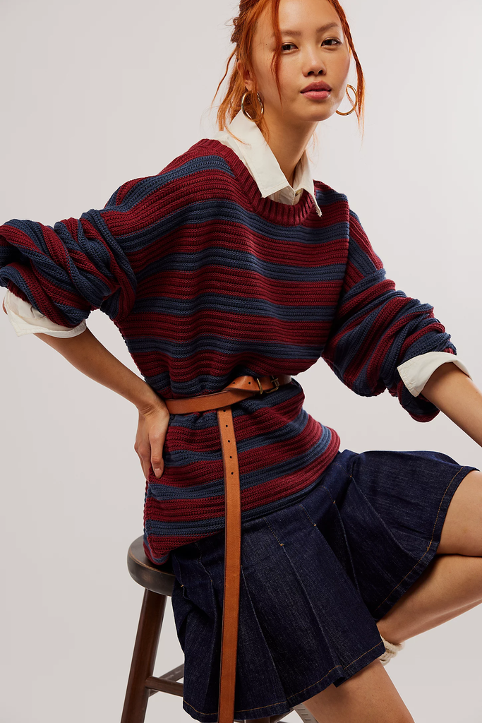“I love the way the model styled this slouchy pullover on-site — aka you may see me popping a cropped button-up beneath the cozy knit and rocking a denim skirt. It reminds me of my early-2010s academia days, which I’d love to dive back into. I’ll be wearing it to my most Christian Girl Fall activities: apple picking, long walks, and cafes.” — Alexandra Polk, Lifestyle Affiliate Writer
