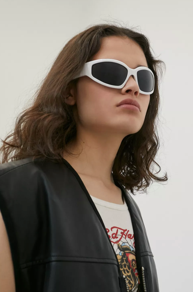 According to global shopping platform Lyst, searches for “sports,” “wraparound,” and “rave” shades have spiked this year, thanks to Balenciaga’s trendy swift oval sunglasses, which celebs like Kim Kardashian and Alexa Demie have sported recently.