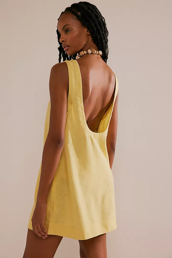 Brighten your day in this cute as-heck sunshine yellow linen dress. The deep scoop-back dress isn’t the only great thing about this dress, it also has pockets! Perfect to store your favorite sunglasses or wallet on a quick stroll. Pick and choose among the four other neutral shades.