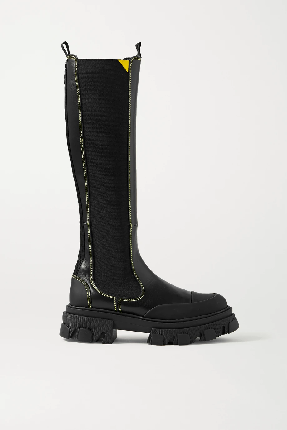 Ganni Rubber-Trimmed Leather Chelsea Knee Boots, $, available at Net-A-Porter