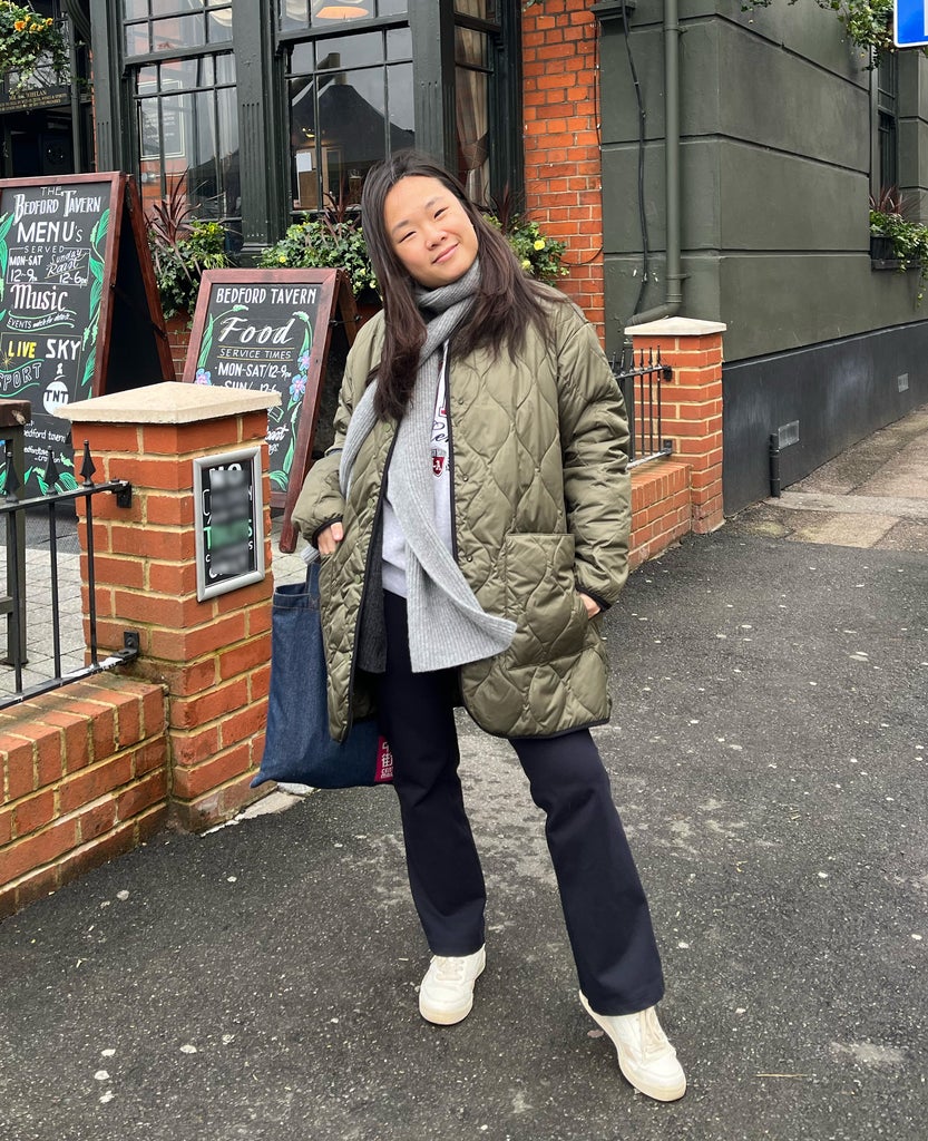 “I’ve been a big fan of LAKE’s luxurious PJs and nightdresses for a while now — the vibrant piping and playful scalloped designs are definitely stylish enough to wear outside of bedtime — so when I got the news that the brand is branching out to knitwear, I was ready to shop. The lineup of sweaters did not disappoint: I went with the off-white Jane sweater, since I really dug the rolled down neckline and faux-horn buttons along the shoulder. It literally looks cute with everything and gives Jane Birkin vibes when paired with blue jeans or a pleated mini skirt. The cotton yarn material is so sumptuous to the touch and has plenty of give without stretching out in the wash. In fact, it has only gotten softer after going through multiple washes. A cozy sweater that can be machine-laundered is always going to be an instant hit with me.”—Venus Wong