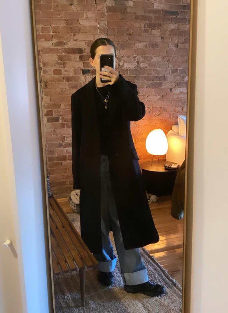 “I’ve been looking for the perfect black winter coat ever since I moved to New York seven years go — I’ve literally just lived through the miserable winters with just one (very old) Uniqlo puffer jacket to my name. I made it my mission this year to finally find a black wool coat that was high-quality, and fit just oversized enough withough looking like it’s swallowing me whole. This coat from Buck Mason is beautiful quality and perfectly menswear inspired without feeling too severe for my taste. I took a size larger than my normal size to add a tiny bit of extra length and a more roomy feel. It’s perfect to throw over any outfit, and I even find myself wearing it over workout clothes and sweats for a coffee run or a walk to the gym.”—Kate Spencer, Senior Affiliate Partnership Manager