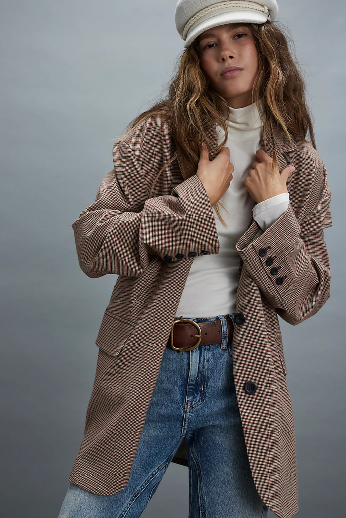 “A cute oversized blazer is the one styling staple I always come back to this time of year. As soon as I saw this plaid, retro-inspired blazer, I knew it was going to be a part of my fall uniform. This is the kind of silhouette and pattern that will never go out of style and instantly makes any outfit look more polished. I will definitely be wearing this with a wool beanie or baseball cap, along with a solid tee and jeans.” — Venus Wong, Senior Writer