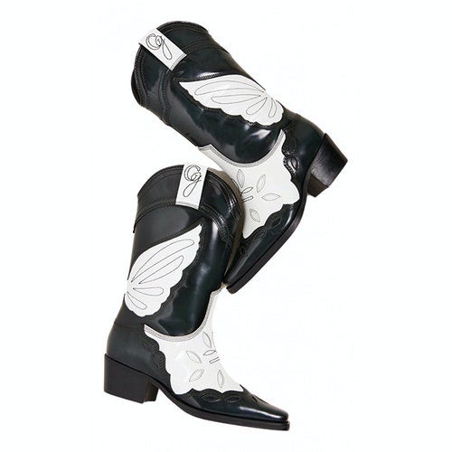 Ganni Leather Cowboy Boots, $, available at Vestiaire Collective