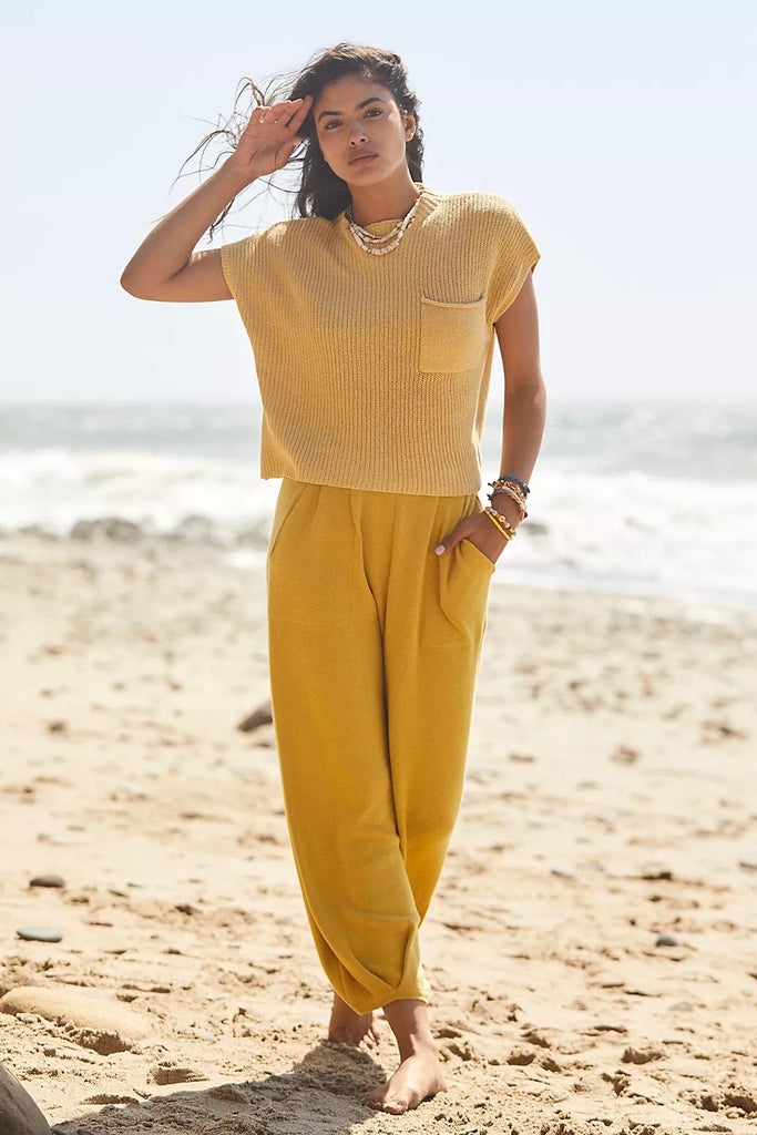 “I love a two-piece set for a couple of reasons: It’s an instant outfit and one that requires virtually no planning on my part, at that. In lieu of matchy-matchy everything, this FP Beach set is making it easy to try some on-trend colorblocking this fall. Plus, the boxy knit sweater tee and matching joggers are perfect for transitional dressing and can be worn together or with existing pieces in my closet. I had trouble picking a favorite from the four colorways, but something is pulling me toward the dreamy oat milk hue (which this set also comes in) that screams California chic.” —Karina Hoshikawa, Senior Writer, Affiliate