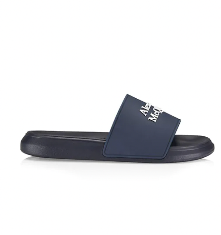 Alexander McQueen Logo Pool Slides, $, available at Saks Fifth Avenue
