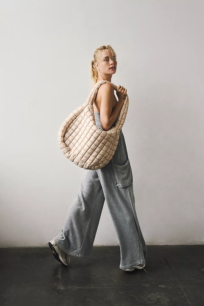 This slouchy carryall will carry you from work to dinner and drinks (or even on a weekend getaway) with its spacious interior space, abundant pockets, and funky quilted exterior. If this beige isn’t colorful enough for you, there are eleven other cheery shades to brighten your day.