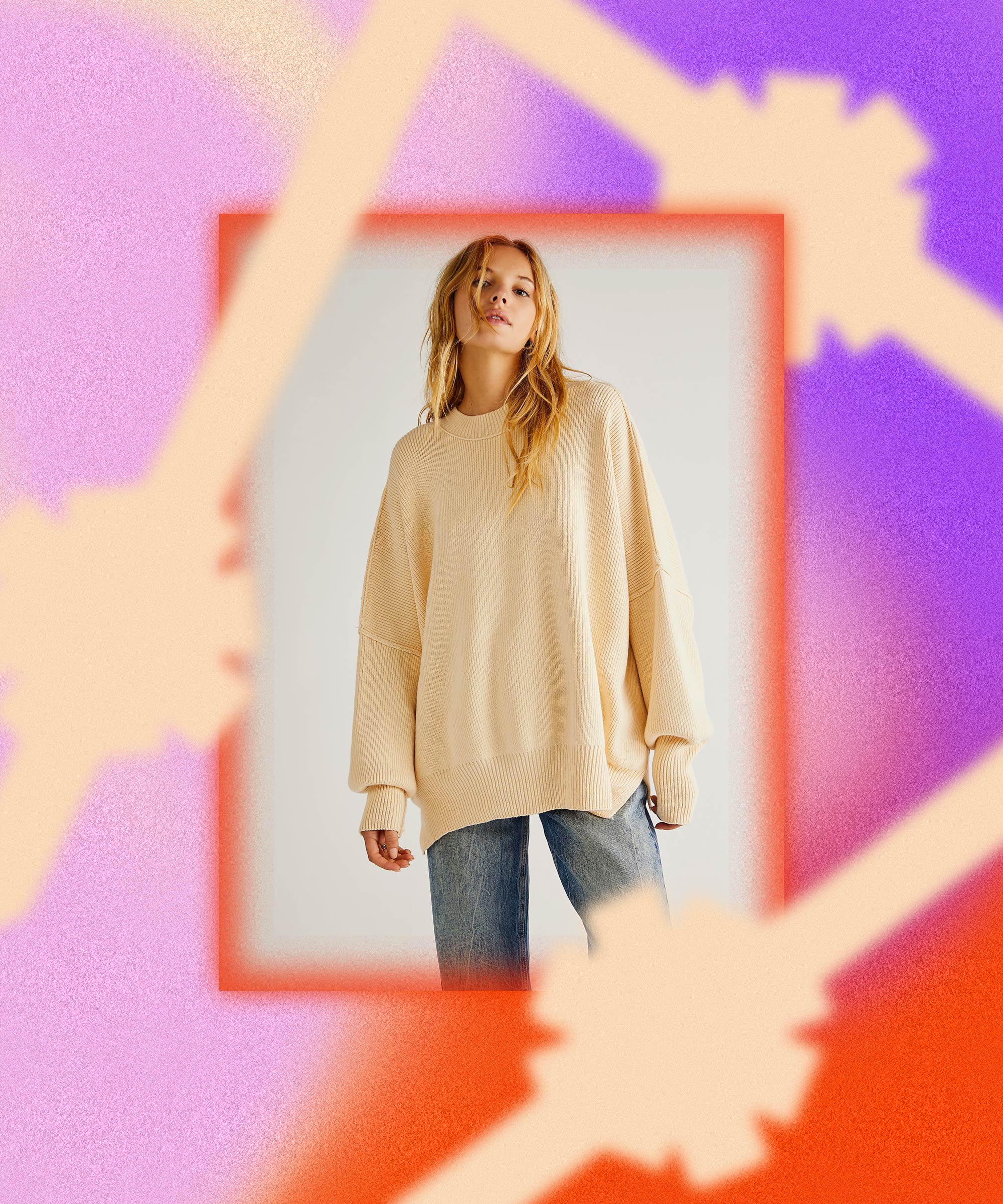 Don’t underestimate the power of a super-versatile, well-designed sweater. (It doesn’t even have to be made in a premium fiber, either!) This oversize knit from Free People can be easily dressed up with a holiday scarf and slip dress, as modeled above, or paired back with a pair of torn-up jeans.
