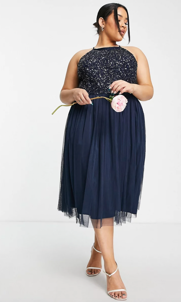 Maya Plus Halter Neck Midi Tulle Dress, $148 $118.50