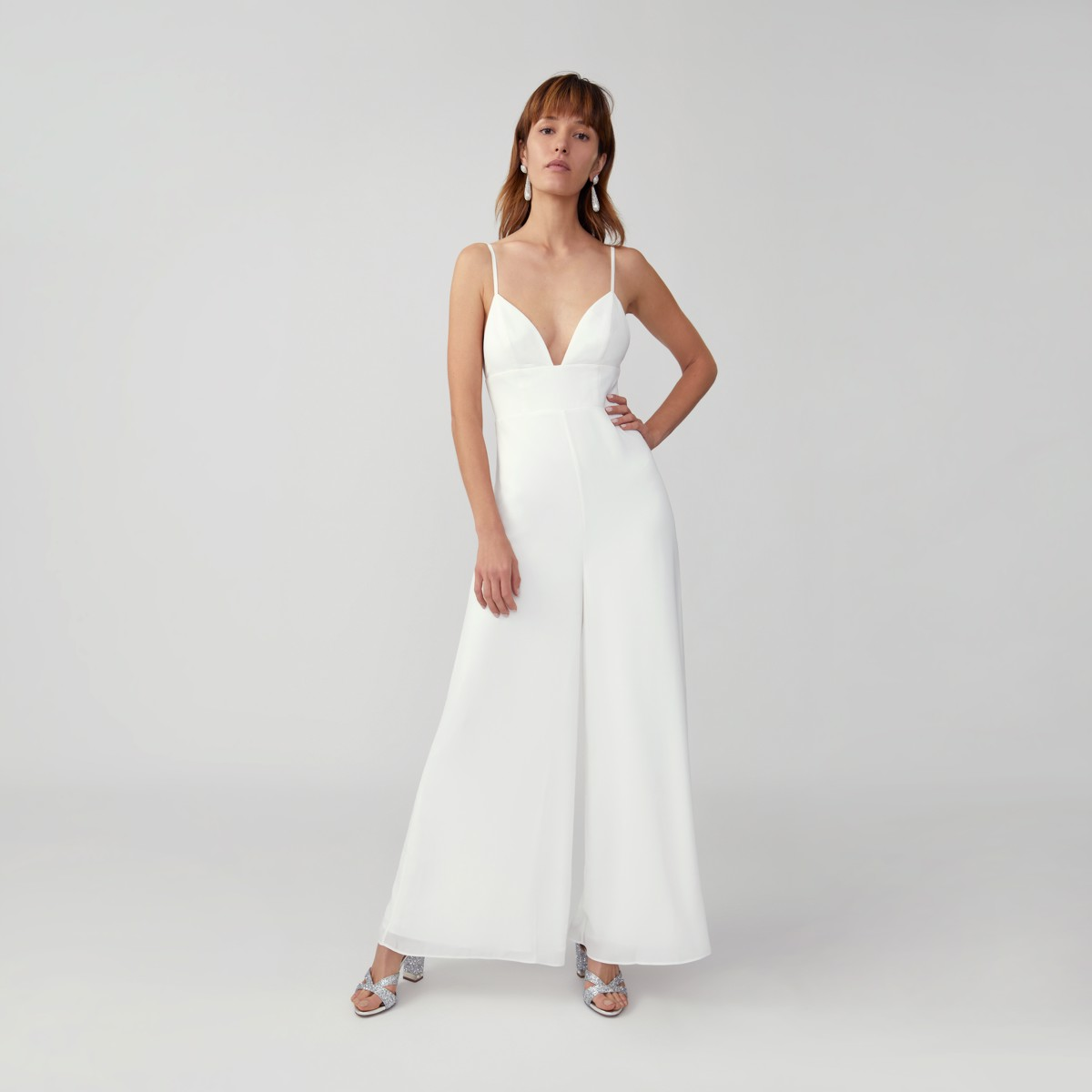 Fame & Partners Heavy Georgette Ivory Jumpsuit, $, available at Fame & Partners