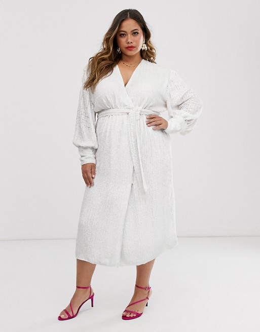 ASOS ASOS EDITION Curve sequin wrap midi dress, $, available at ASOS