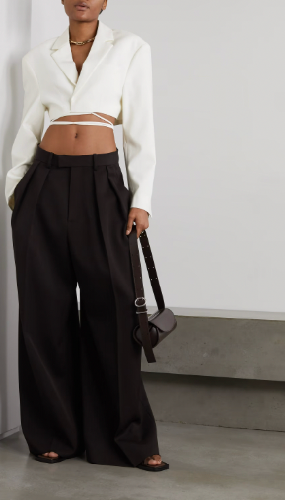 Bouguessa Nahid Cropped Tie-Detailed Grain De Poudre Blazer, $, available at Bouguessa