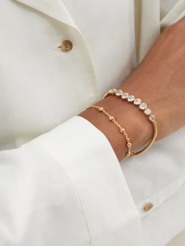 Along with elegant necklaces of gold herringbone chains and micro-chain anklets, the brand curates unforgettable engagement rings, wedding bands, and heartwarming personalized engraved gifts. If you don’t know where to start, the Dear Kaia nameplate necklaces are our personal favorite and a must-have item.