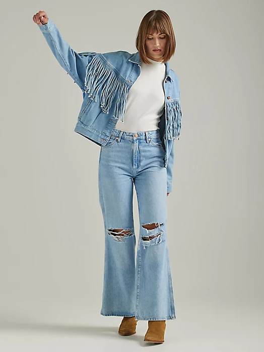 Wrangler Bonnie Destructed Loose Flare Jean, $, available at Wrangler