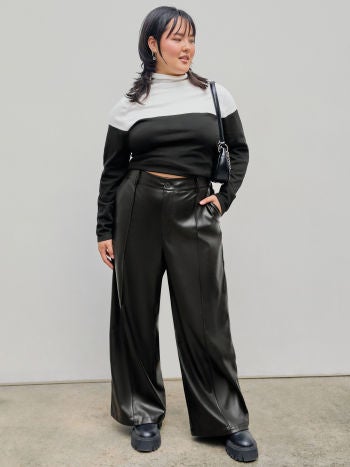 cider Curve PU Solid High Waist Wide Leg Trousers, $, available at Cider