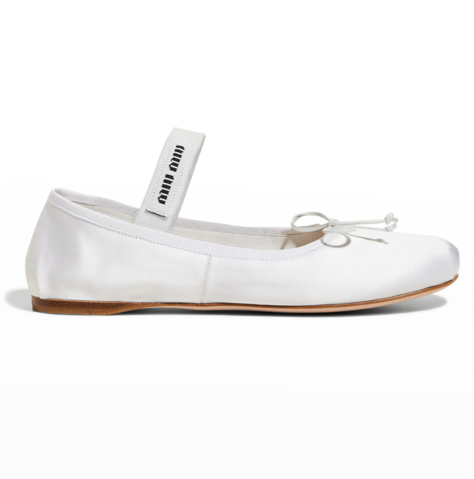 Miu Miu Satin Bow Ballerina Flats, $, available at Neiman Marcus