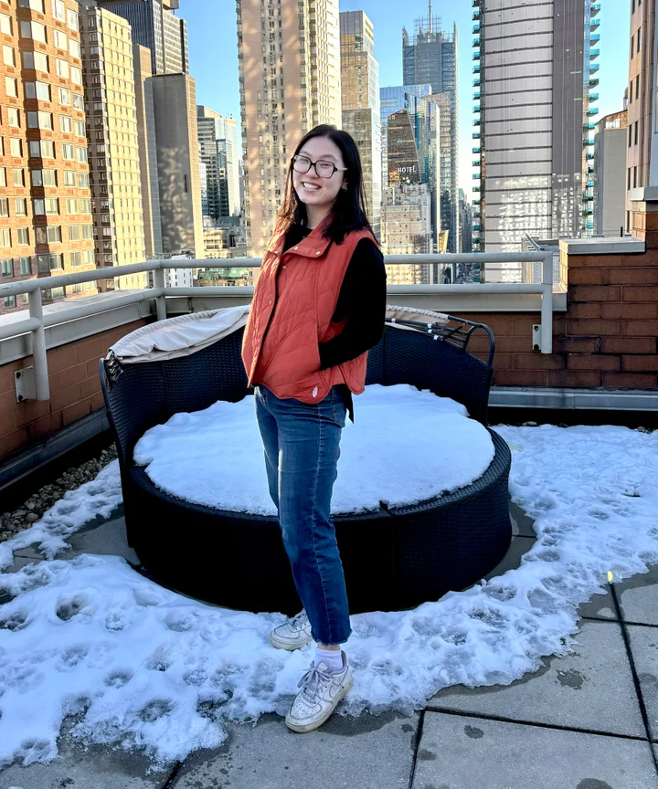 “I’m a big vest girl, especially during the transitional months when I start getting back into running. For spring, I wanted a vest that’s a little more girlie than a tech bro vest, and I love FP Movement’s Quinn quilted puffer! It comes in so many cute colors and has a cutesie scalloped edge detail. This will be perfect for jogging around Central Park or doing errands this spring. I would definitely size down; usually, I’m a size large, and I got a medium as it has an oversized fit and I didn’t want to look like I was swimming in the vest.” — Becca Sax, Affiliate Coordinator