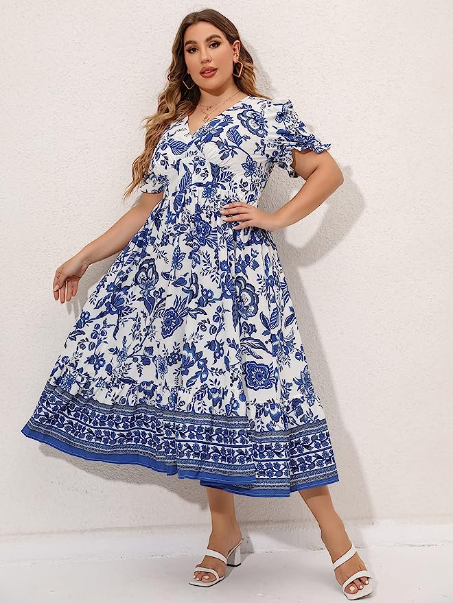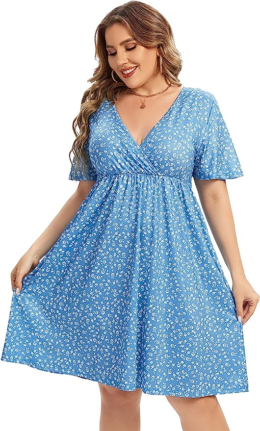 MakeMeChic Plus Size Floral Short Sleeve Dress, $, available at Amazon