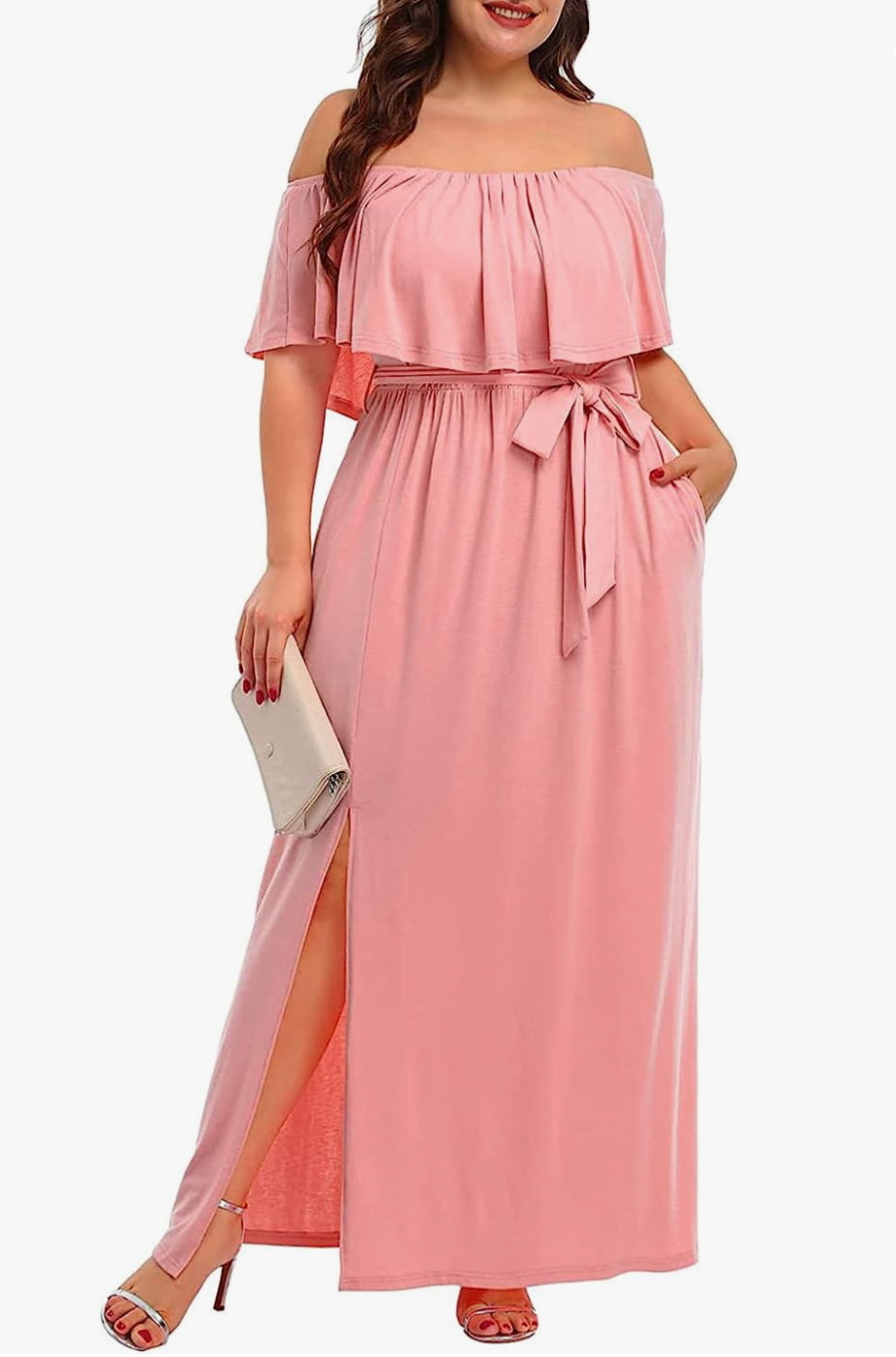 Pinup Fashion Plus Size Off The Shoulder Maxi Dress, $, available at Amazon