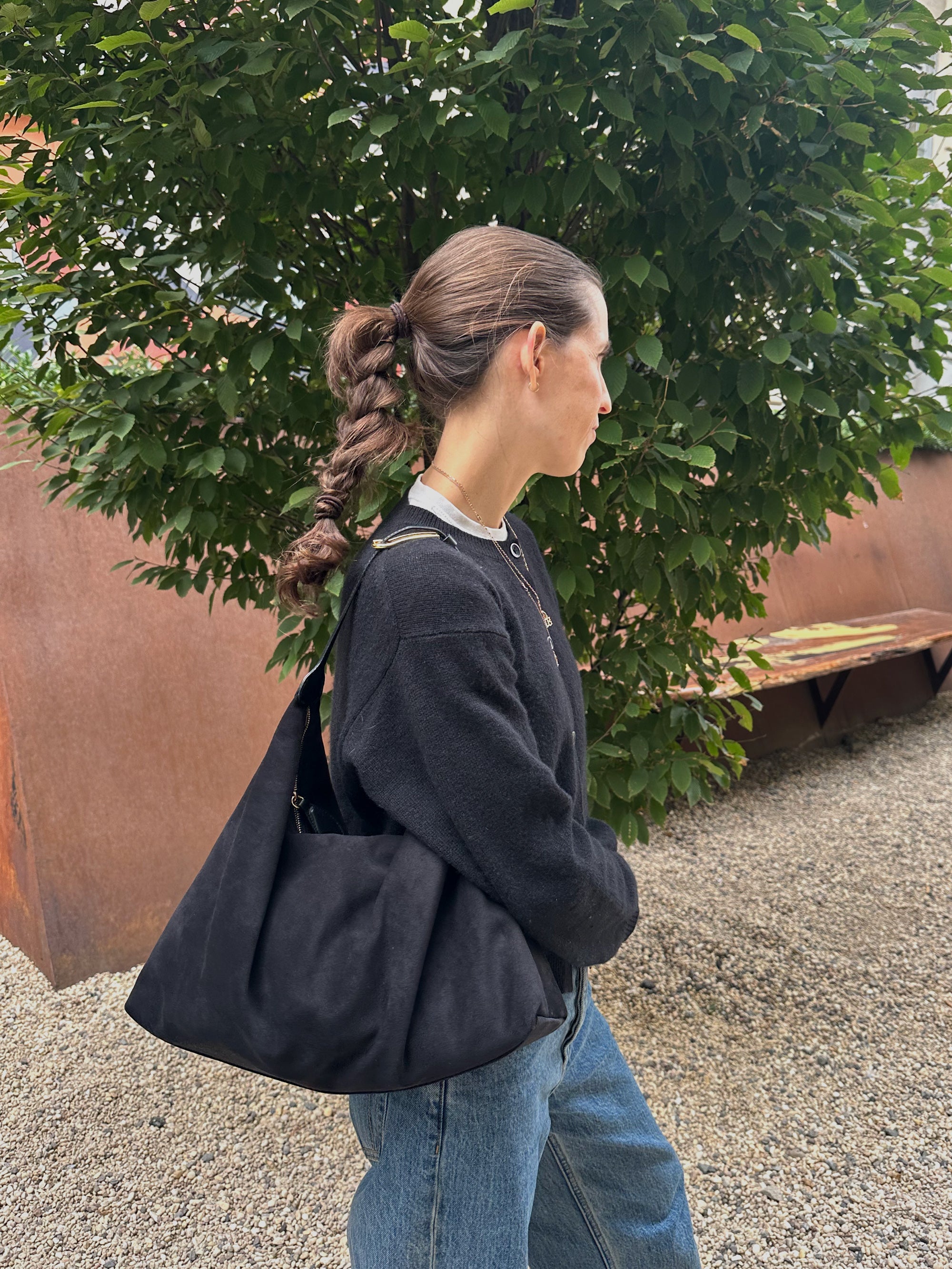 “Although suede is trending, it’s a material that never goes out of style. I’ve been on the hunt for a suede bag to add some texture to my fall wardrobe, and this black shoulder bag from Little Liffner has fit the bill. It’s super comfy to carry, can be dressed up or down, and is just the right medium size to fit all of my necessities.” — Kate Spencer, Sr. Affiliate Partnerships Manager