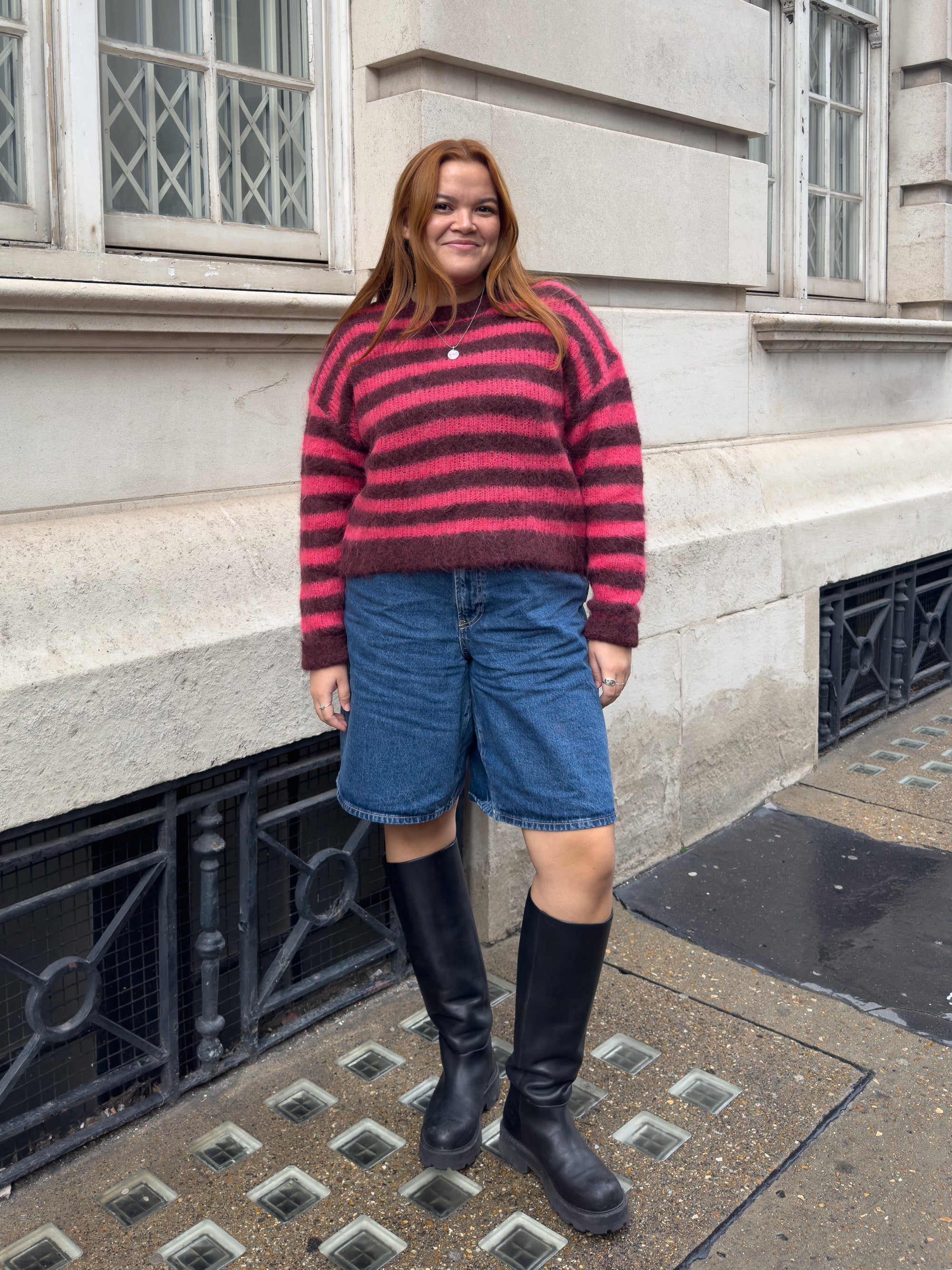 “Sweater weather is upon us, and what better way to kick it off than with this cozy striped number from American Vintage. I don’t usually gravitate towards pink, but I absolutely love it in this color combo, and can definitely see myself wearing it throughout the seasons. Not only is this sweater warm, but it’s also the perfect length for me, which often feels like a rarity as someone with quite a short torso…” — Kristine Romano, Associate Editor, Photo & Design