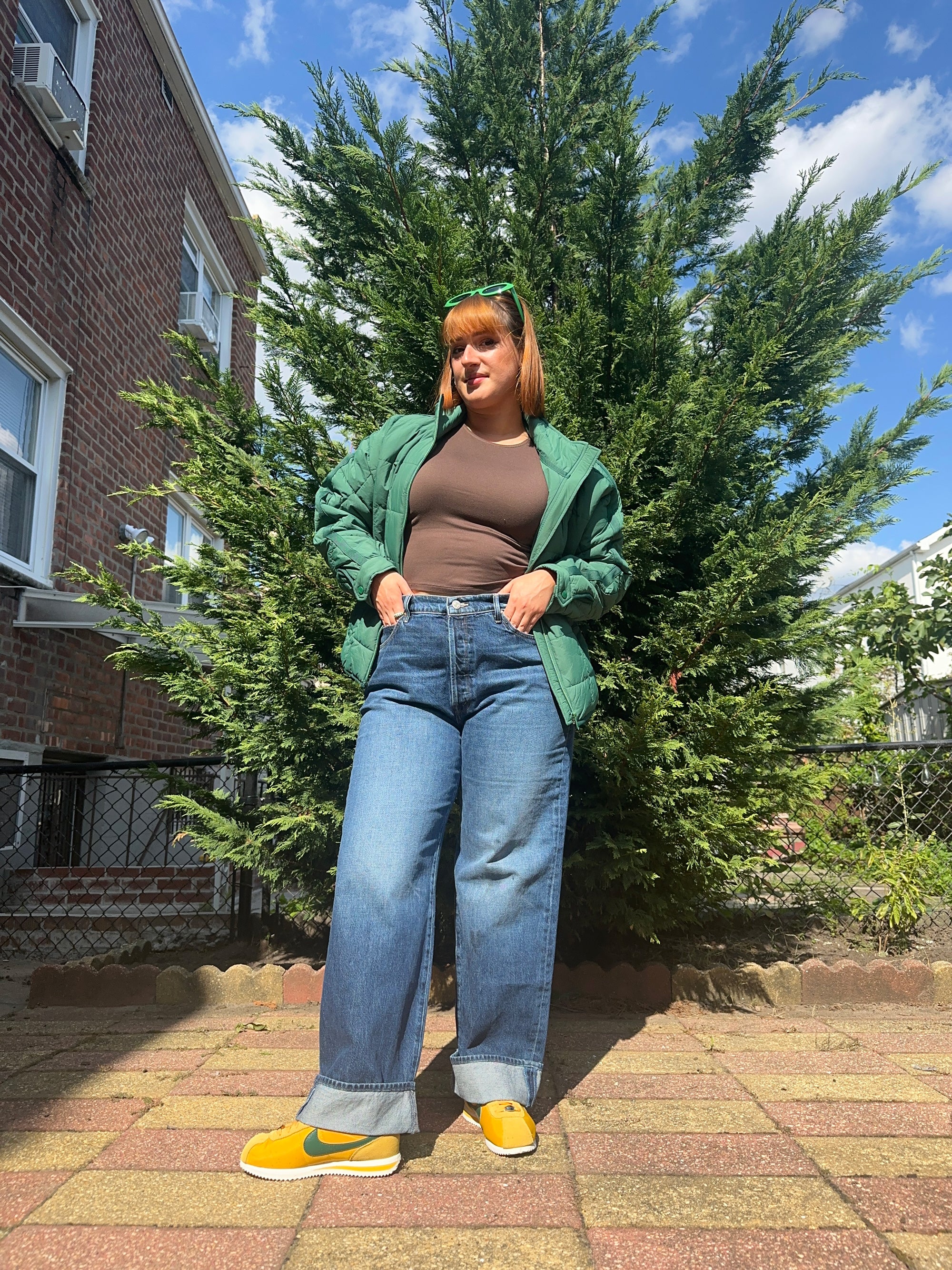 “I’ve gotten the opportunity to test tons of jeans from different brands, most recently a range of Mother wide-leg and flared jeans. While I enjoyed every style, this cuffed pair was a surprising favorite. Although they’re baggy and oversized, the petite fit isn’t overbearing on my 5’3” frame. I really like how relaxed these jeans and their faded wash are, and am excited to continue wearing them out for casual fall activities.” — Victoria Montalti, Associate Fashion Writer