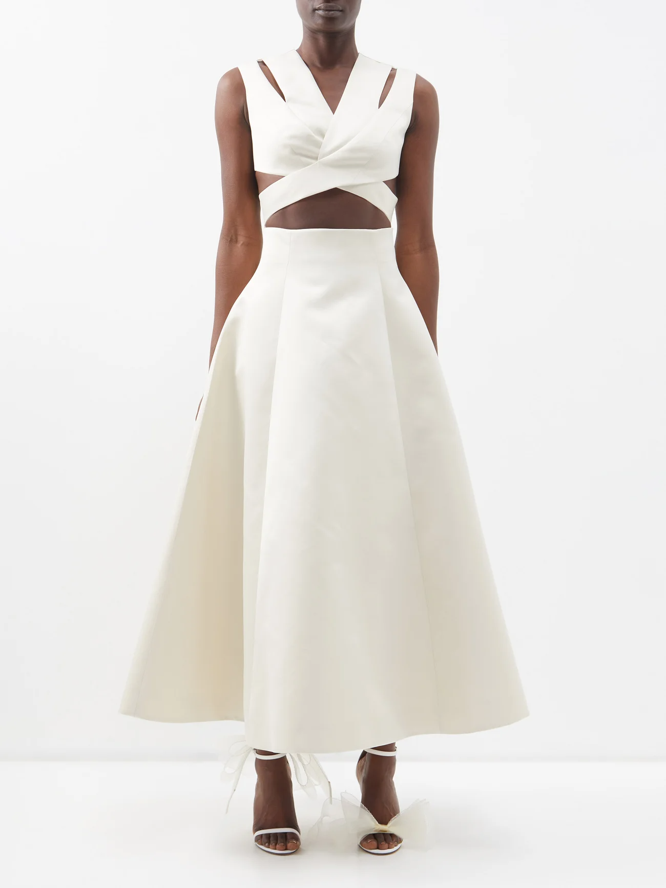 For a more classic selection, e-tailer Net-A-Porter carries brands like Jacquemus, Emilia Wickstead, 16Arlington, and Brandon Maxwell. In addition to short dresses and gowns, you can also shop separates perfect for before and after the big day.