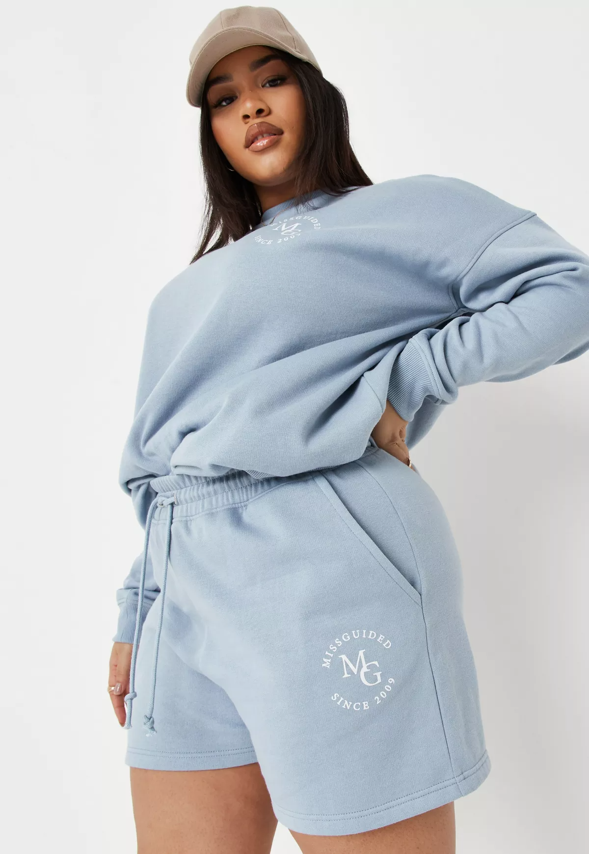 Missguided Plus Size Blue Co Ord MG Jogger Shorts, $, available at Missguided