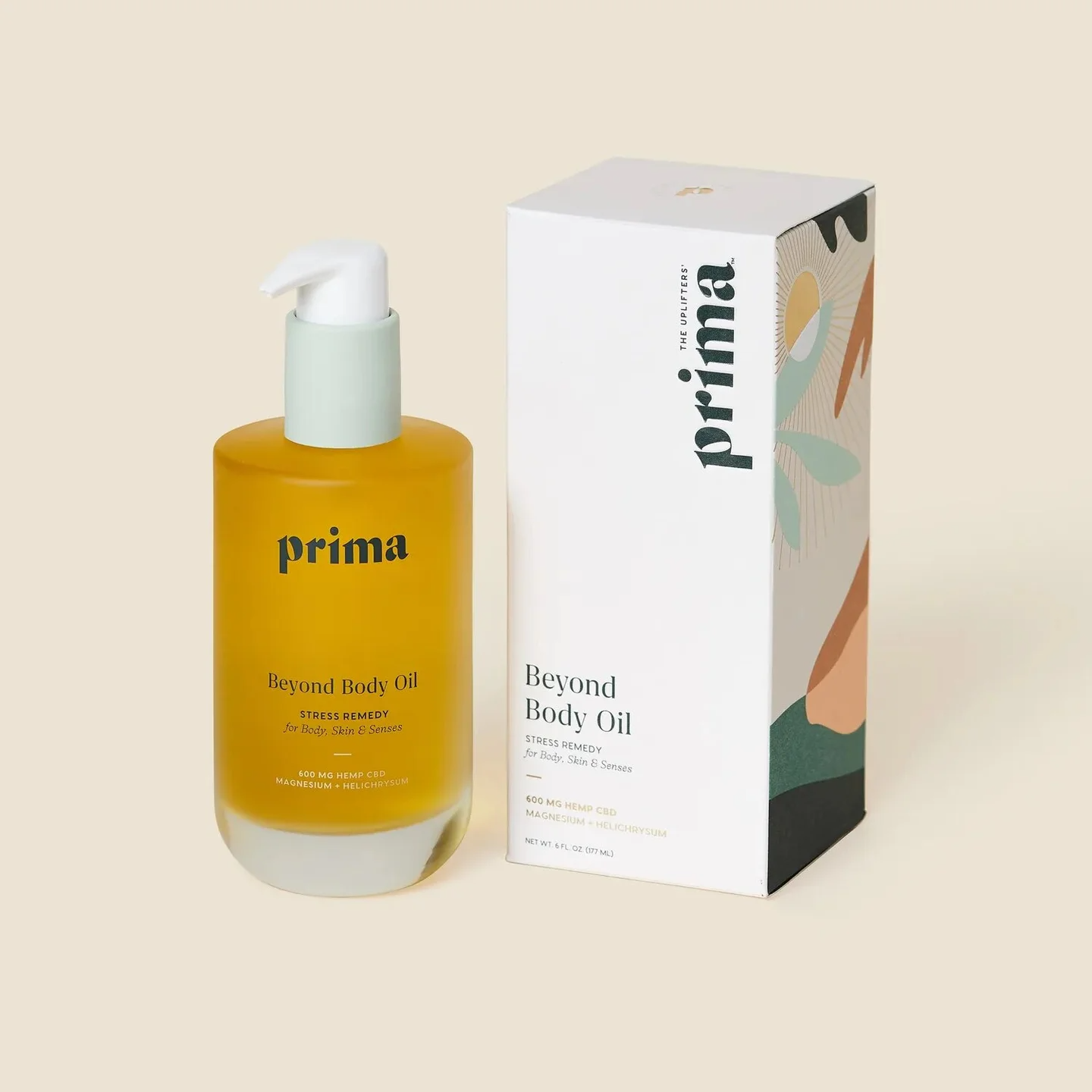 PRIMA Beyond Body Oil | 600mg CBD Age-Defying, Lightweight, Nourishing, Nutrient-Dense, $, available at Prima