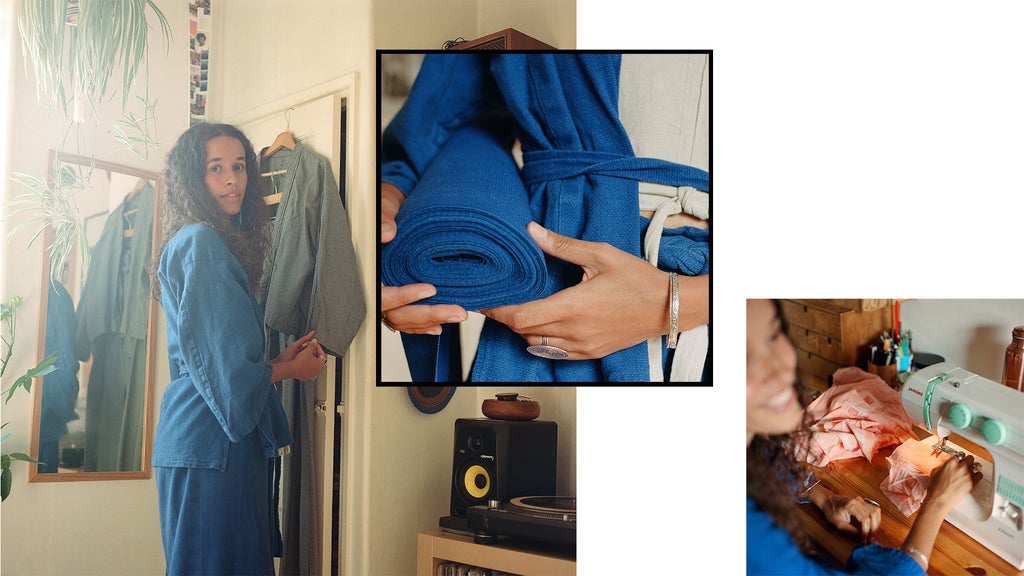 If you’re getting started, the main thing is setting aside time – you can’t underestimate that. London is so diverse and every borough has a brilliant market where you can buy affordable fabric. I use old bedsheets, curtains and throws to make most of my pieces, because they’re made from cotton and thick wool and are built to last. Community is so important, too. In Deptford there’s a stall run by an older couple who collect scrap materials from different places which I love buying from. Also, I make stage outfits for my friend who is a musician and she’s teaching me to sing! Exchanging skills is really underrated. Living in London, everything is frantic and fast, but we should make time for these things. Sewing is so therapeutic, just the sound of the needle bobbing away. We’re always looking at screens but when I’m sewing, I’m meditating.”