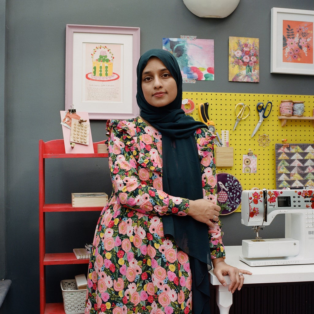 Making my own clothes has changed how I view fashion. When I go to the high street, all I can see is that there are too many clothes – such huge numbers, it’s quite overwhelming. All of those pieces have been made by somebody and will probably only be worn a handful of times. Once you know firsthand all the time that went into that garment, how long you’ll wear it for becomes so important. I spend so much less on clothes now; when I do buy something it’s only occasionally and I can afford for it to be different or special, which is nice. Because I’m a Muslim woman who wears hijabs, a lot of people assume that I sew because I can’t find what I want to wear. While that is not the case – there are lots of options for modest dressing – I do sew because I can’t find what I want to wear, but only because I’m petite and love Scandinavian style. You can’t always find those pieces in small sizes so I make clothes that are tailored to my preferences.