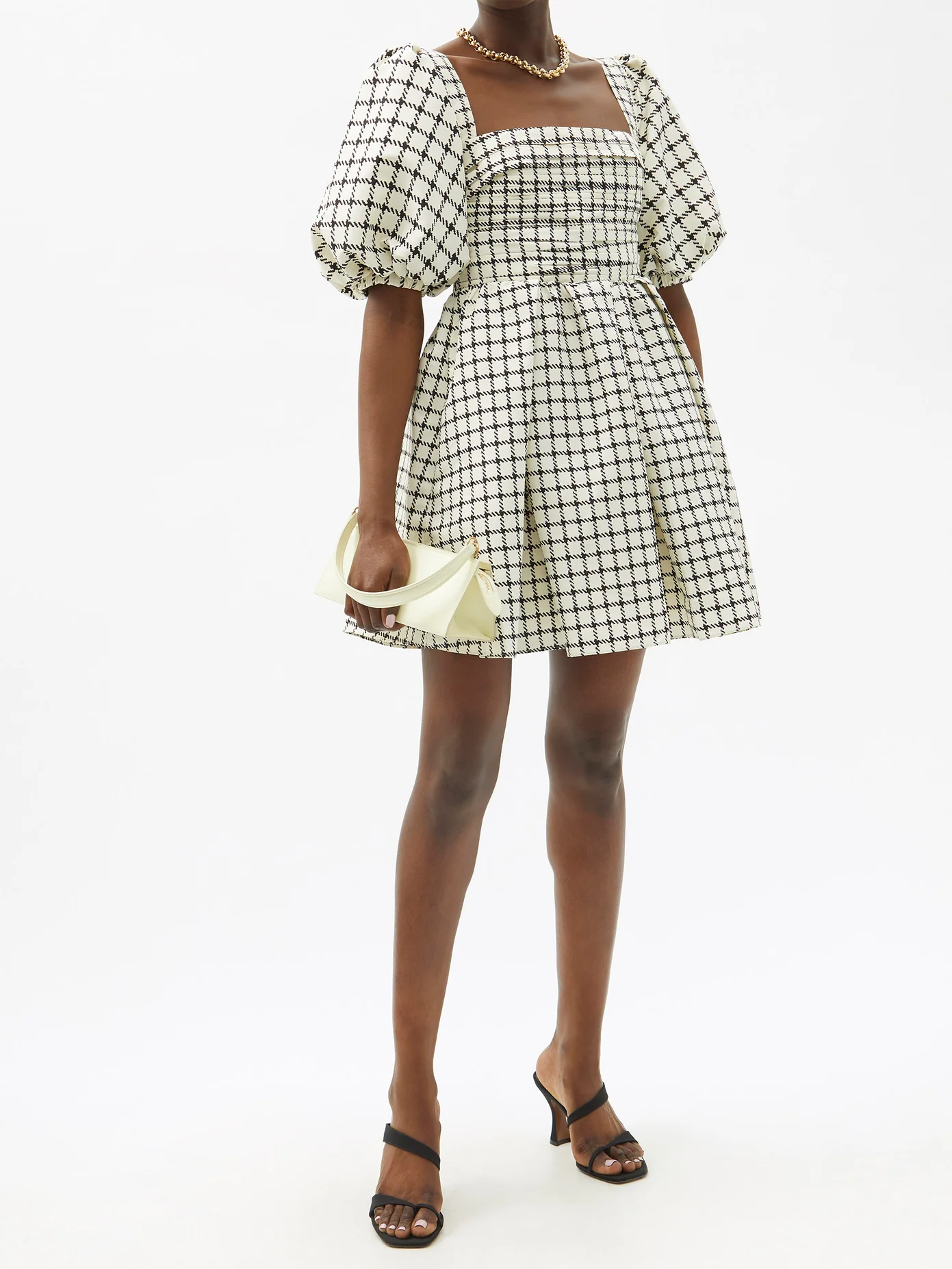 Self Portrait Puff-sleeve checked taffeta mini dress, $, available at MatchesFashion