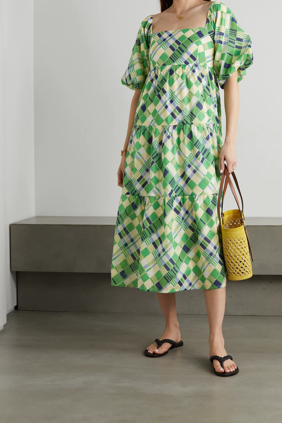 Faithfull the Brand Falabelle tiered checked cotton-poplin midi dress, $, available at Net-A-Porter