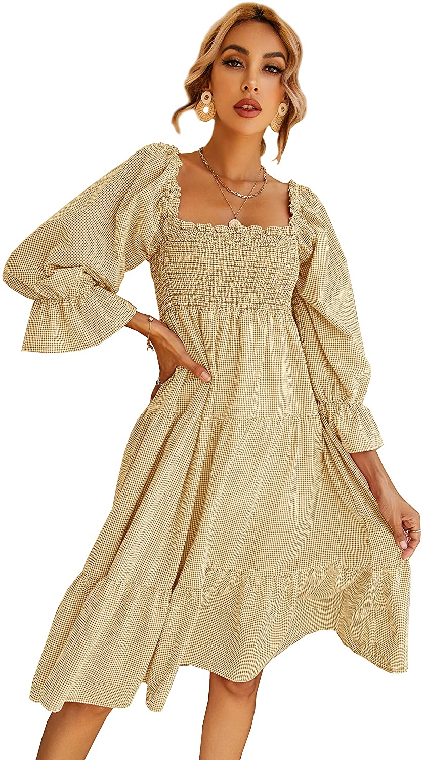MintCloudBoutique Plaid Gingham Puff-Sleeve Midi Dress, $, available at Etsy