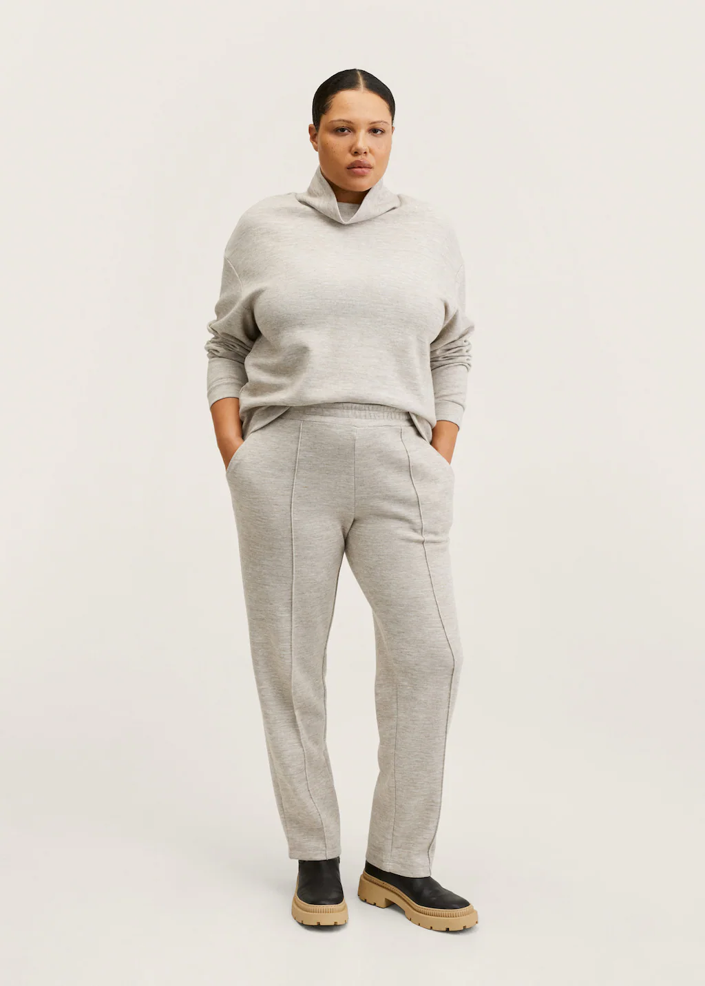 We know Mango for its sleek lines and classic colors. Consider this chic grey set from their fabulous plus size section.