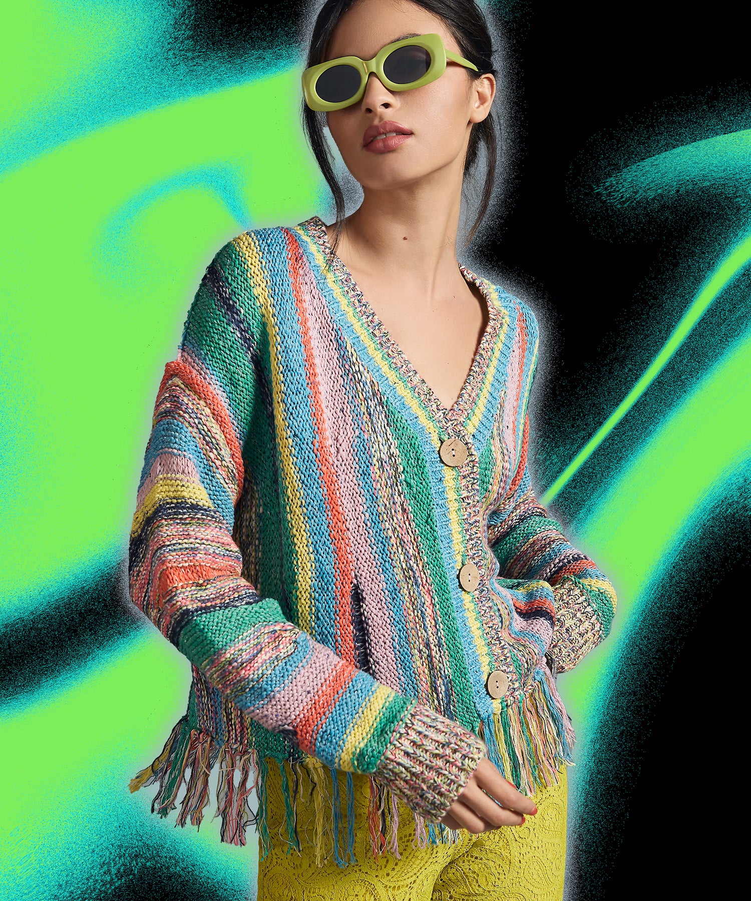 Introducing an ensemble that’s a blast from the past. While fringe is commonly associated with Western fashion, we’re highlighting the groovy, free-spirited vibe of the ’70s with its lively prints, quirky designs, and bold colors. *Color maximalists have entered the chat* Let loose a little and upgrade your off-duty ensembles with a playful statement look.