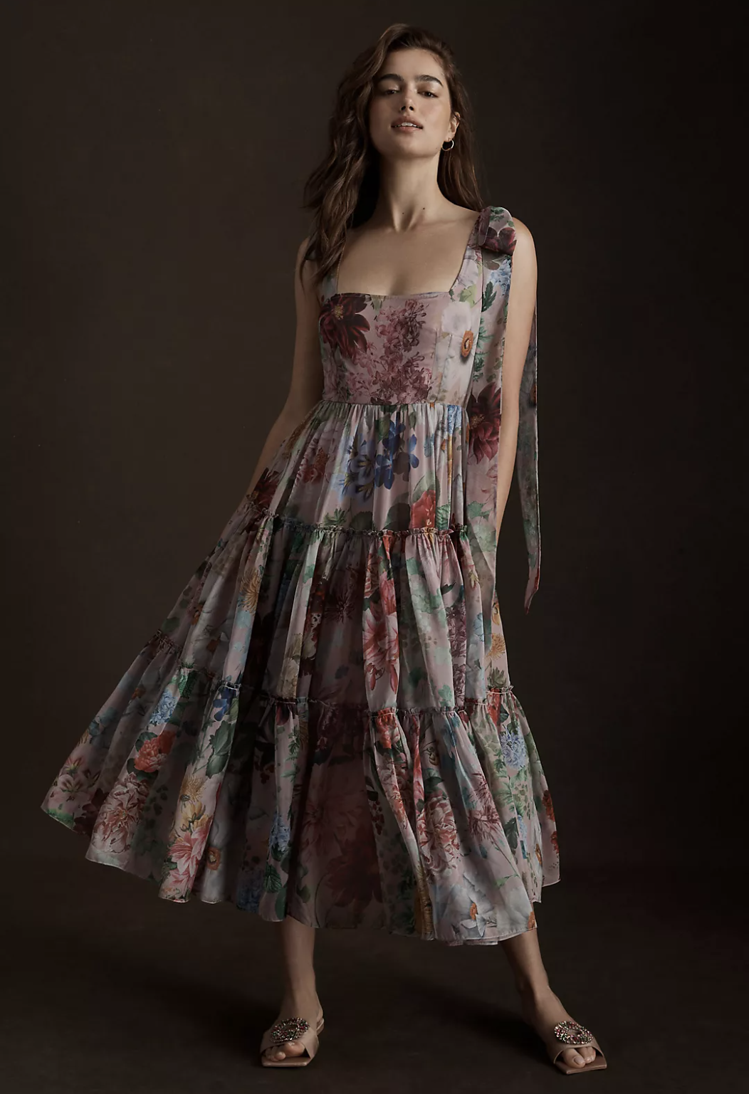 BHLDN Isabella Tiered Square-Neck A-Line Midi Dress, $, available at Anthropologie