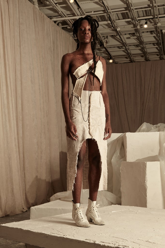 Rooted in her Midwestern upbringing, Elena Velez highlights the artisanal and industrial heritage of this region, focusing on craft and materials, as well as sustainability. In 2019, the designer was chosen as one of Teen Vogue’s Generation Next designers — a mentorship initiative for emerging designers — and has since gone to show her work during New York Fashion Week. According to fashion commentator and writer José Criales Urzueta, the designer’s emphasis on craftsmanship and community that sets her apart and promises a bright future in 2022: “Her work is informed by a myriad of references including a deep fashion knowledge and a love for craft and materiality, and it all comes through very harmoniously.”