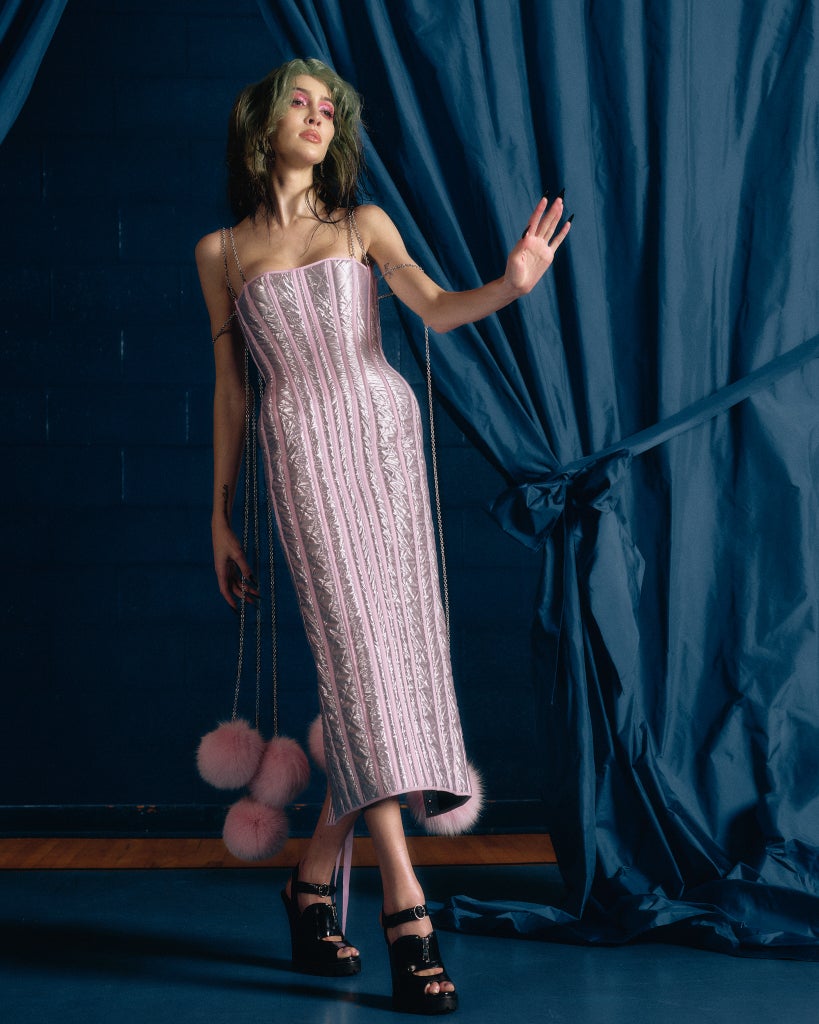 An alum of Thom Browne, Jackson Wiederhoeft recently debuted his first ready-to-wear collection for fall 2022, filled with corset dresses, floral-printed hoodies, metallic quilted coats, and harlequin prints. But the brand has already established itself as a fantasy couture and bridal line that counts Lady Gaga and Jordan Alexander as some of its celebrity supporters. (The latter wore a white bustier to the Gossip Girl premiere last year that made me reconsider just how versatile lingerie can be.) Since then, the brand has continued making a name for itself with voluminous shapes, corseted numbers, and lots of tulle that isn’t just for brides.