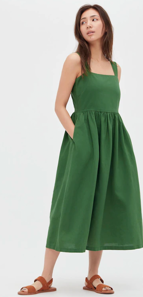 The A-line style of this linen-blend frock is chic yet laid-back. Also, the shirring emits a fit-and-flare silhouette if you were looking for something beyond Y2K-inspired mini dresses. It comes in four playful colors — off-white, orange, green, and navy — so you can bring a little color to your wardrobe this season.