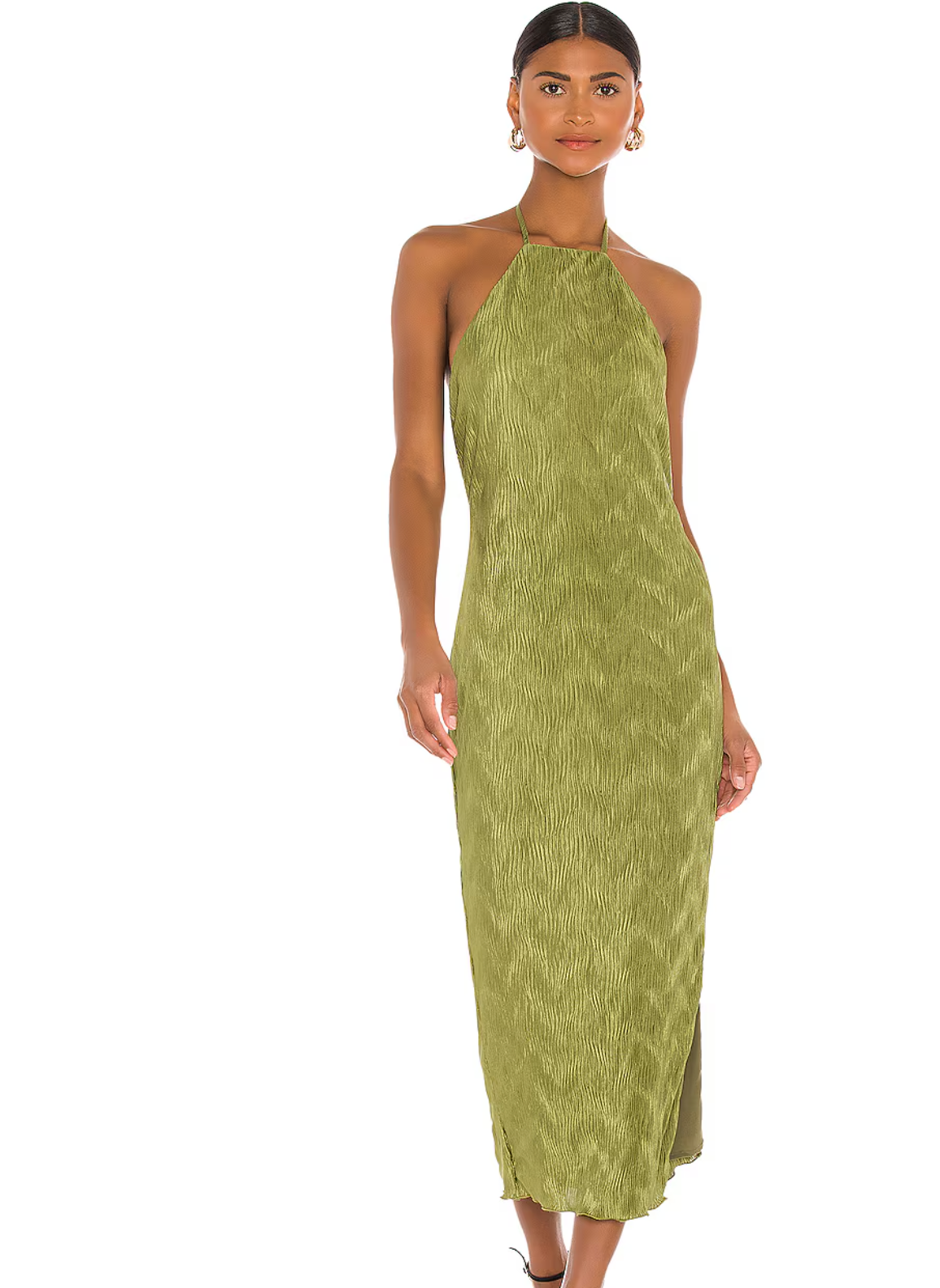 You know what they say about the color green — it symbolizes new beginnings, growth and renewal. In other words, it definitely gives a seasonal glow up. This lightweight, effortlessly chic dress features a low halter back and a side split that adds just the right amount of edge and soft, feminine flair. Consider it a great addition to your closet must-haves.