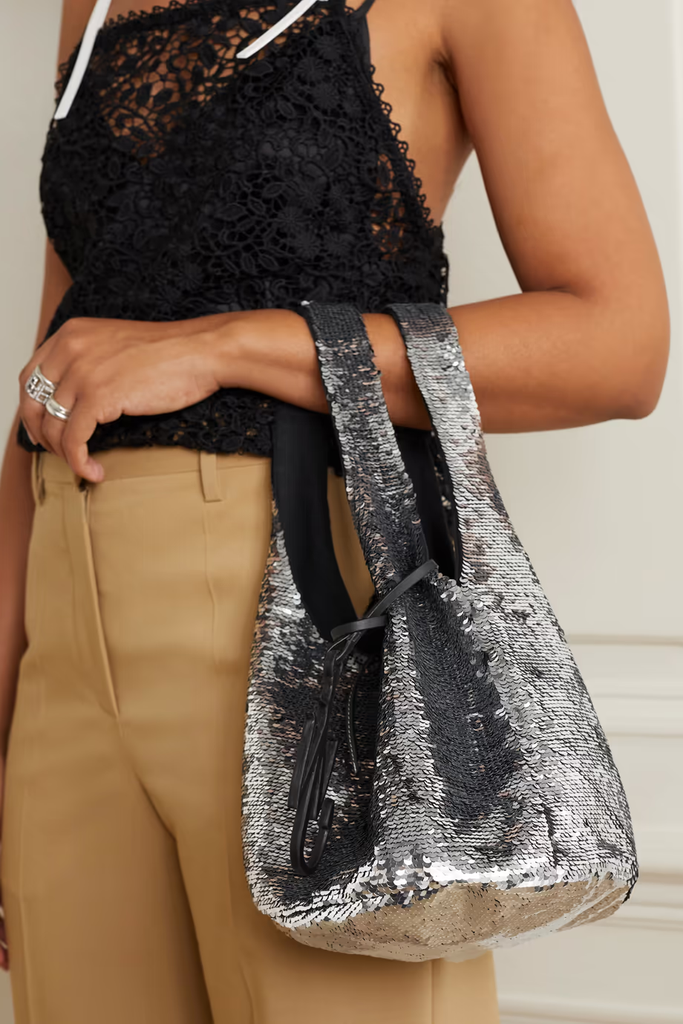The pandemic has spurred trends that run the gamut of personal style. On one side of the spectrum, you have things like house dresses and sweatpants-as-real-pants, while on the other end you have a full embrace of sexy dressing and glitzy materials. The latter has felt reminiscent of The Roaring Twenties and sparked a dialogue about the return of this iconic era in fashion. Translate this festive sentiment to your handbag collection with one of the numerous sparkly bags of the season.