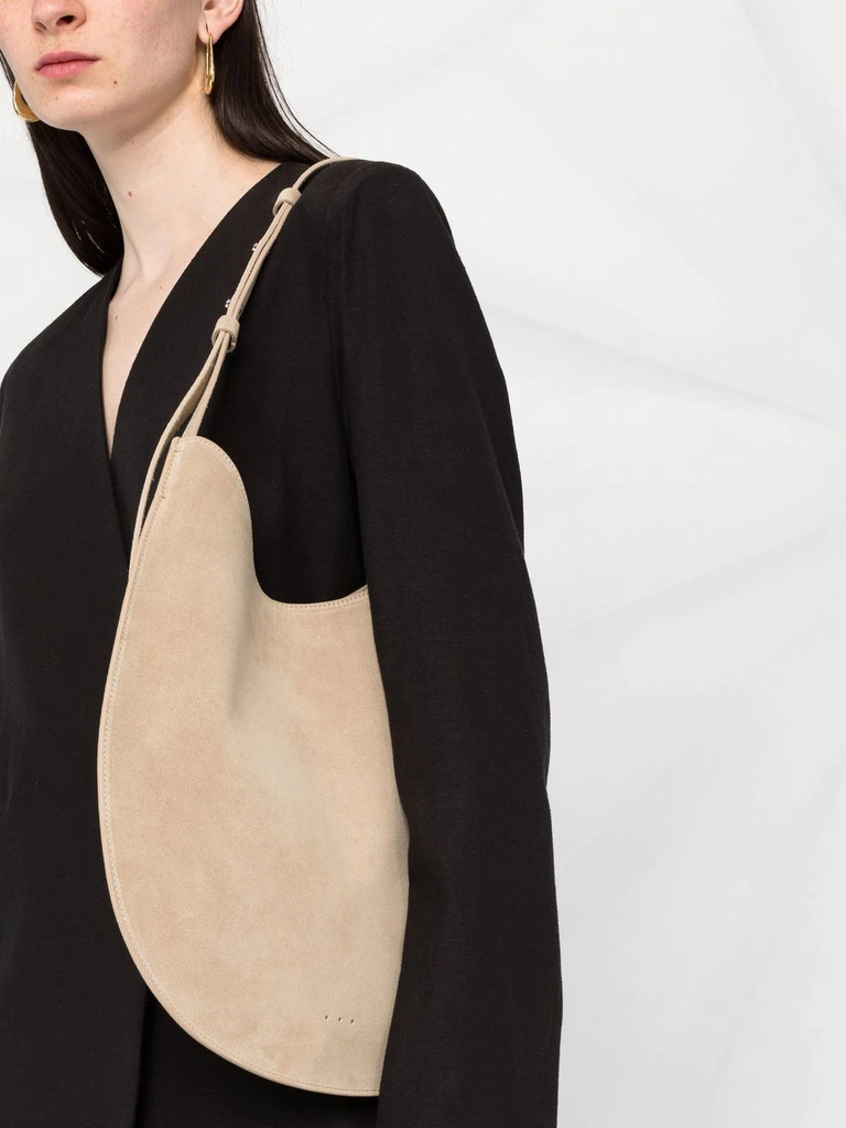 The slouchy silhouette is decidedly alive and well. For fall, this relaxed 70s-inspired style finds its footing in earth-toned colors and suede textures. Among the more exciting examples of this is found at Khaite with the brand’s covetable moon-shaped shoulder bag. Wear yours with a chunky knit and trousers for an effortless approach to autumnal style.