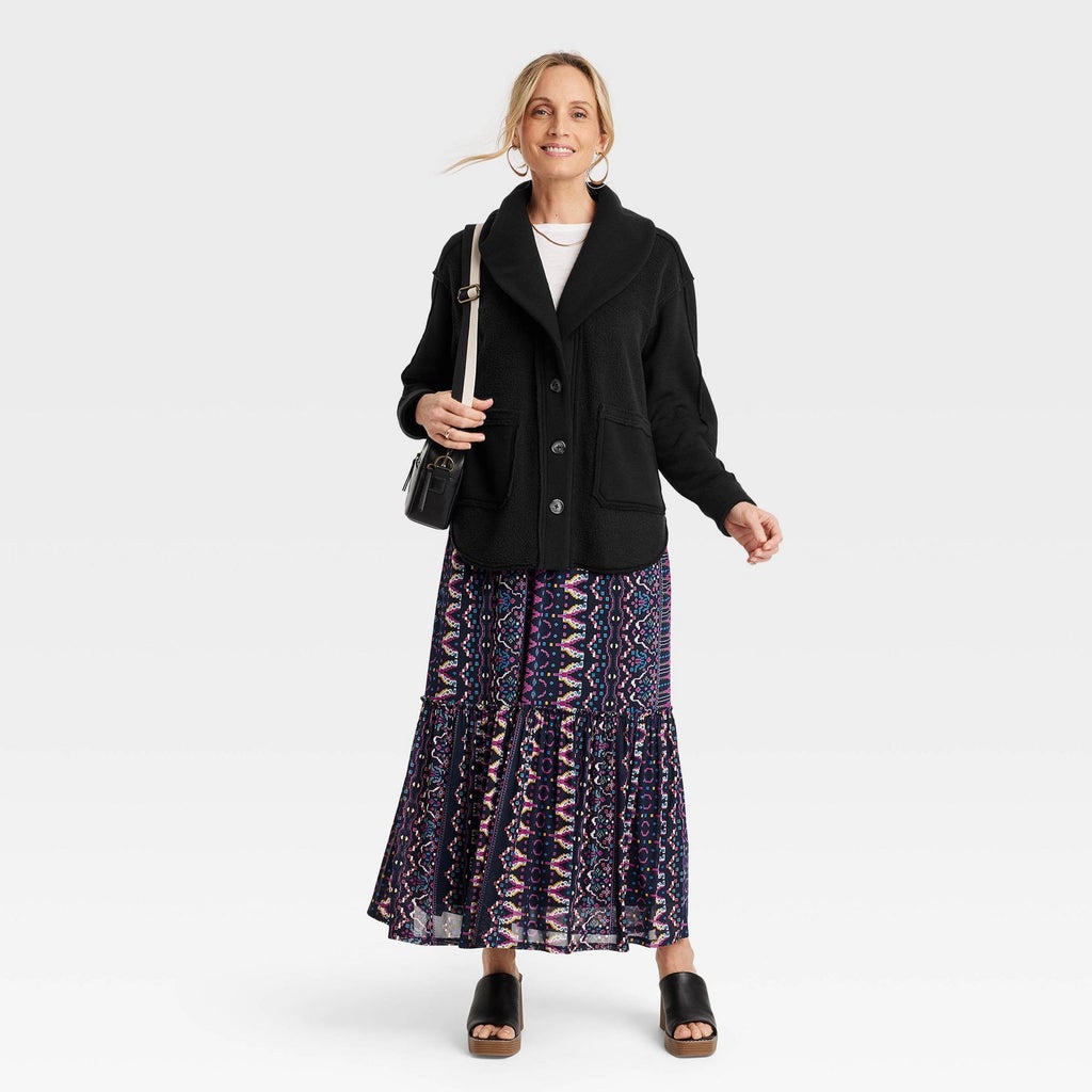 Everyone needs a cardigan-style jacket in their lives. You will be able to wear this black one for many years to come, thanks to the versatile color and soft and fleecy fabric.